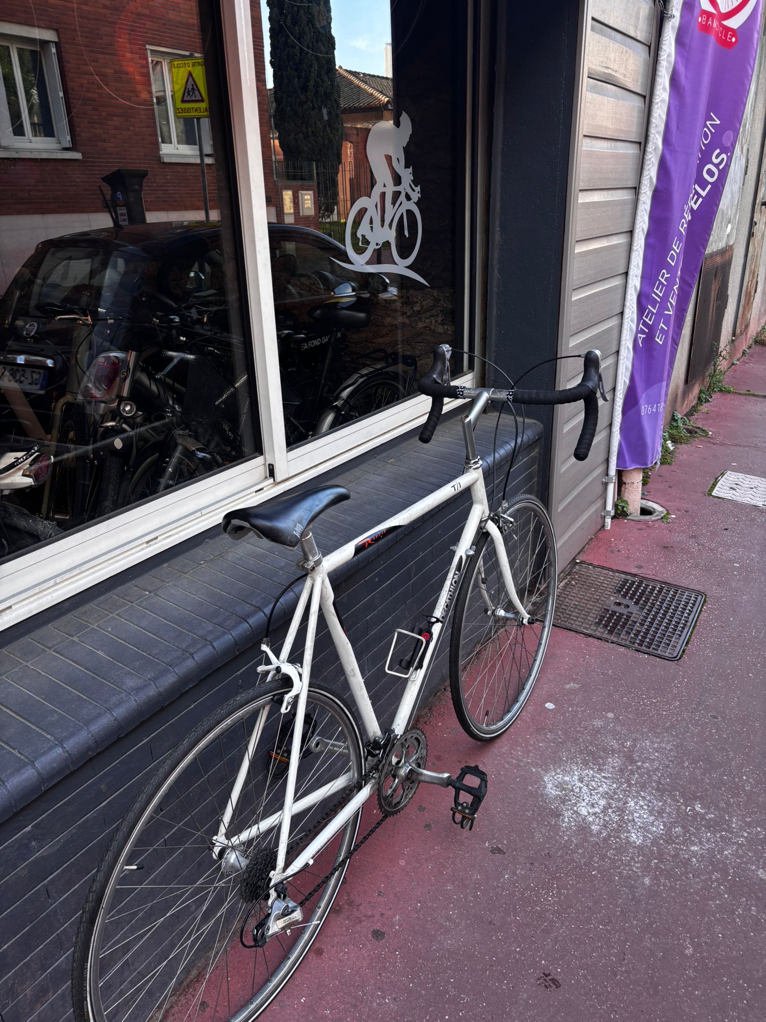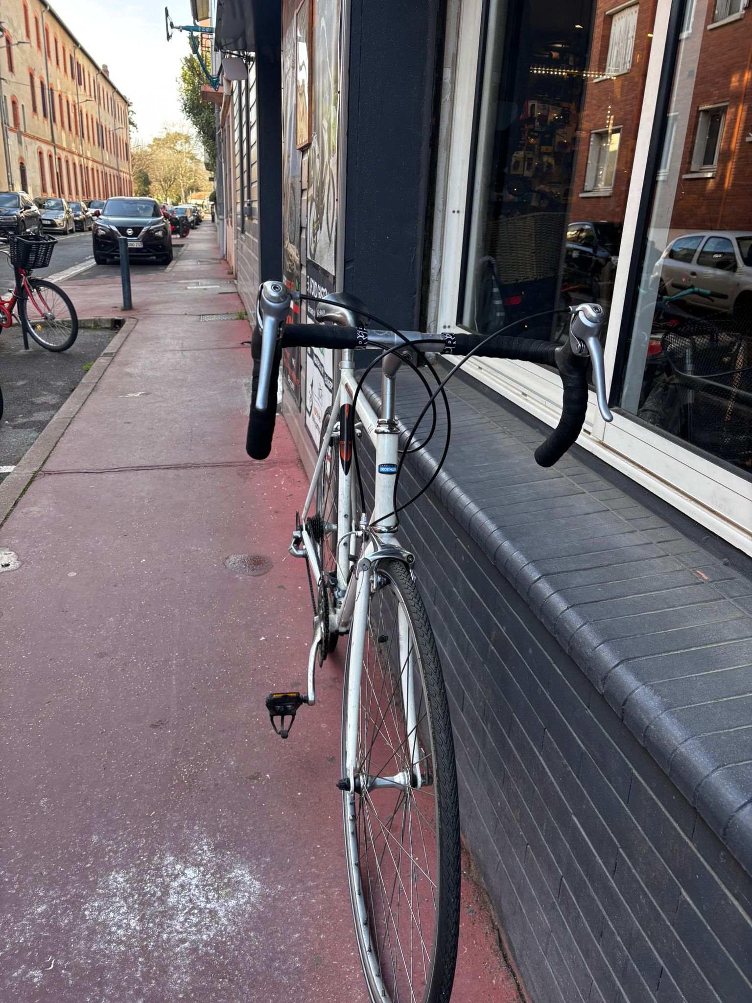 Vélo route transformé en vélo de ville Taille L Decathlon, 7 vitesses à l’arrière et 2 plateau à l’avant, Pneu Shwalbe Marathon (23-622)