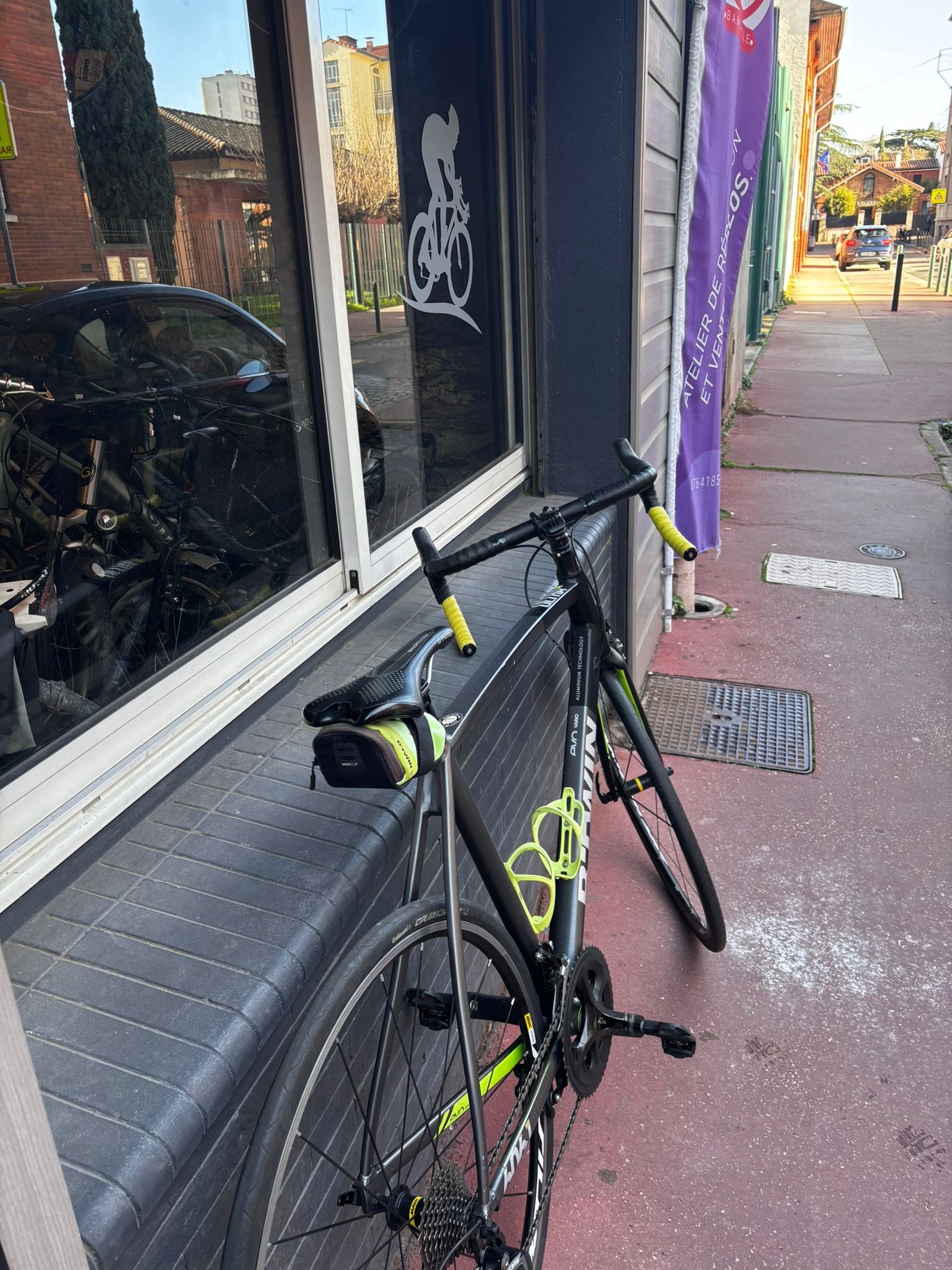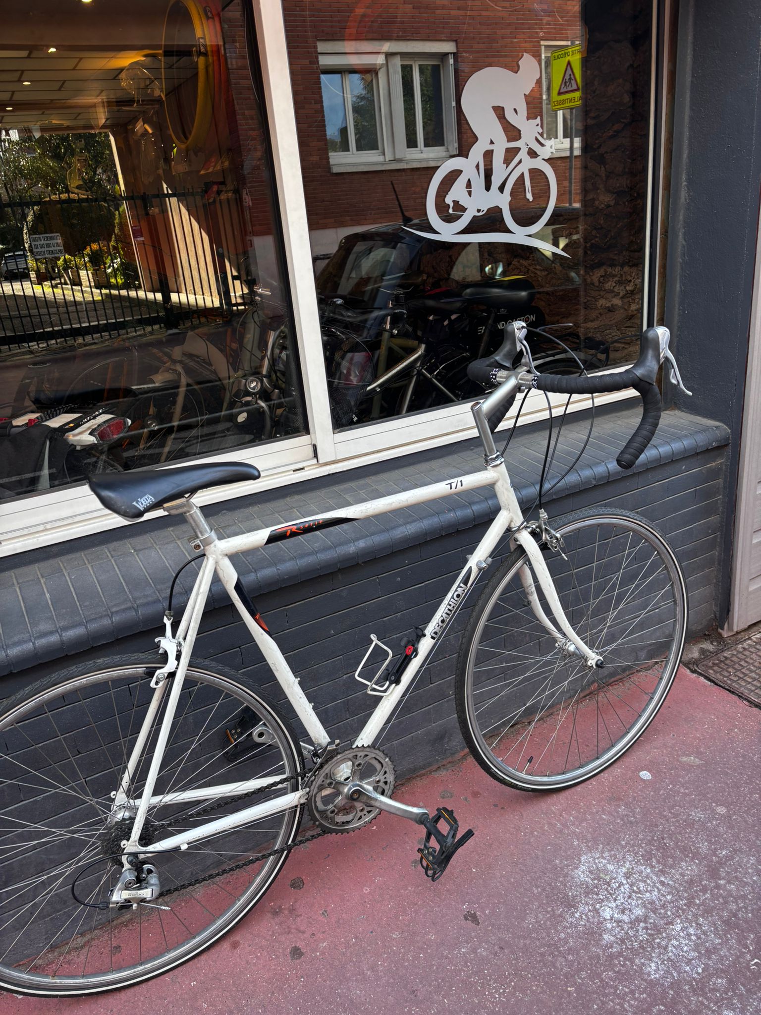 Vélo route transformé en vélo de ville Taille L Decathlon, 7 vitesses à l’arrière et 2 plateau à l’avant, Pneu Shwalbe Marathon (23-622)